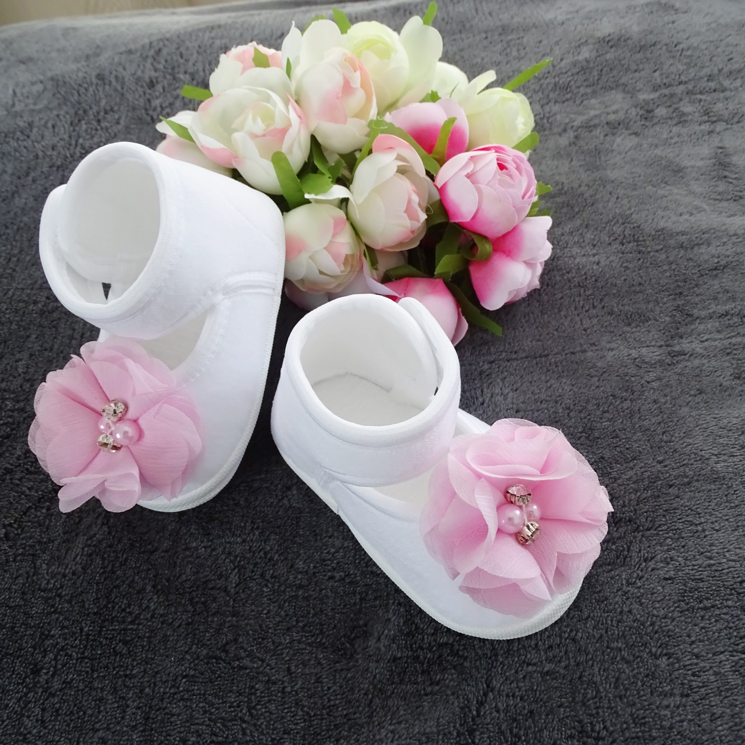 Schuhe für festliche Anlässe wie Taufen oder andere festliche Gelegenheiten, mit einer Schleife in einem weißen Farbton. Wunderschöne Schuhe, die perfekt zu festlichen Kleidern passen. Alles ist liebevoll verarbeitet.