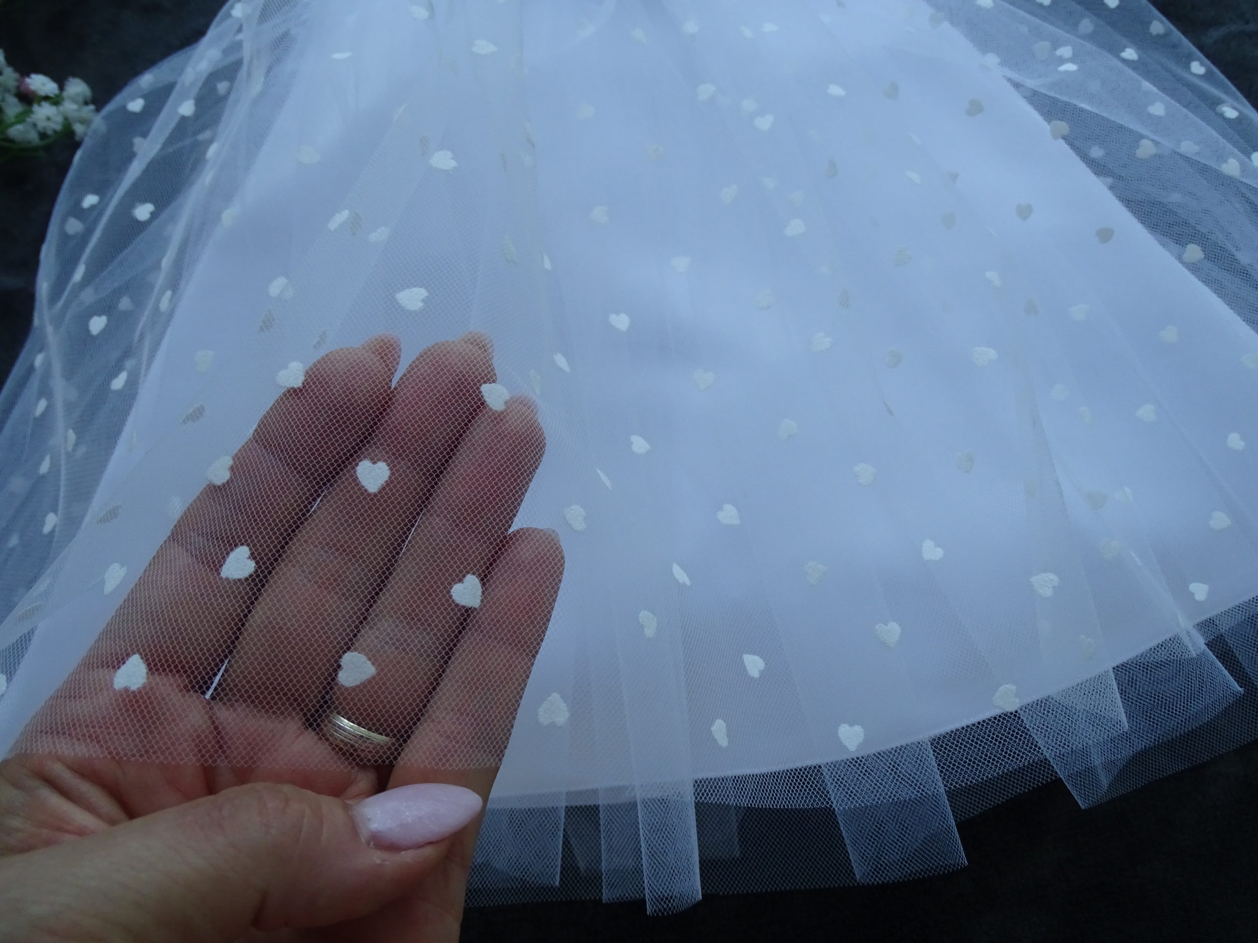 Das hochwertige Satin ist in der gleichen Farbe wie das Spitze und Tüll.