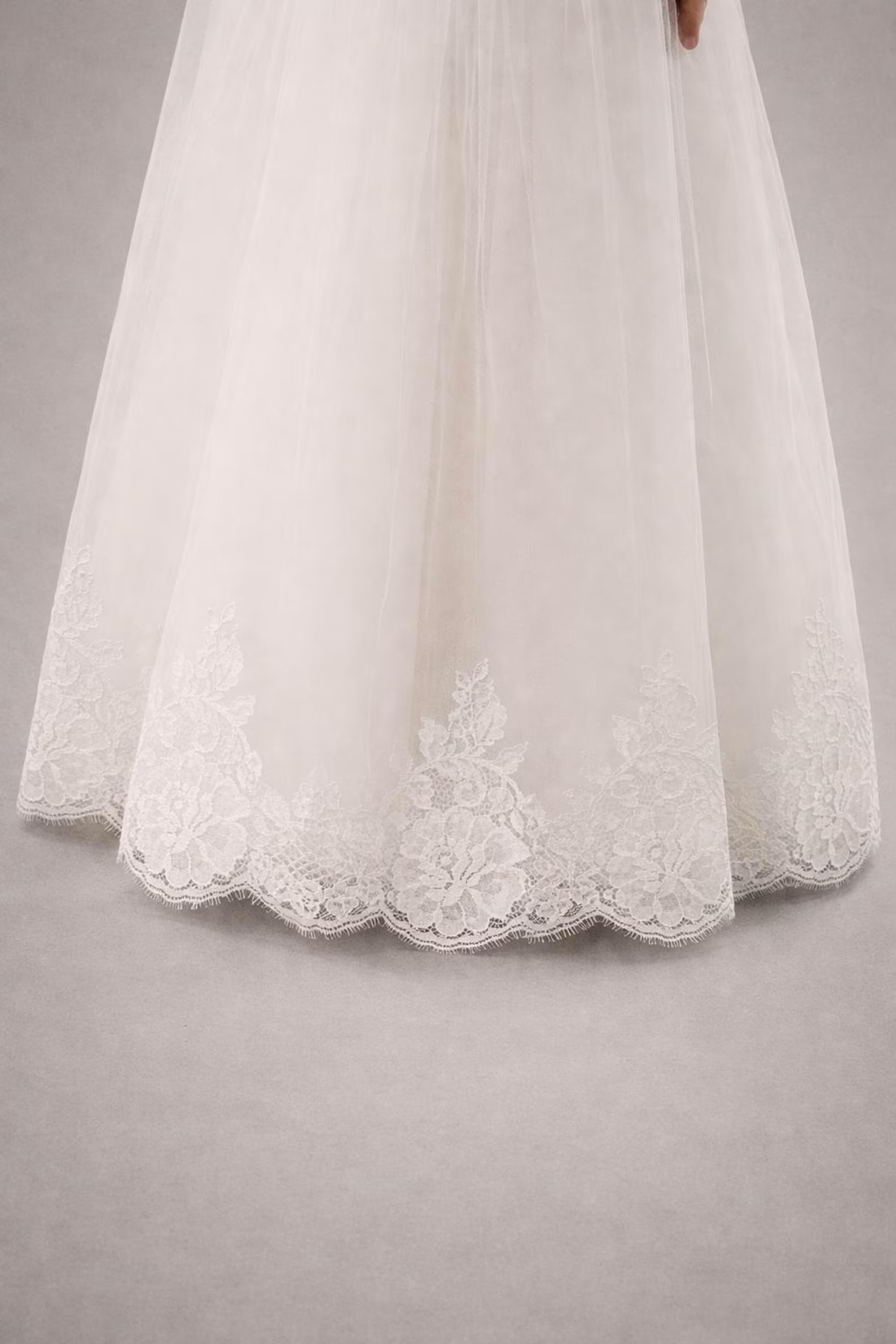 Der weich fallende Rock aus leichtem Tüll sorgt für eine schöne Silhouette und angenehmen Tragekomfort. Am Saum befindet sich eine dekorative Spitzenbordüre, die das Design besonders edel wirken lässt.
