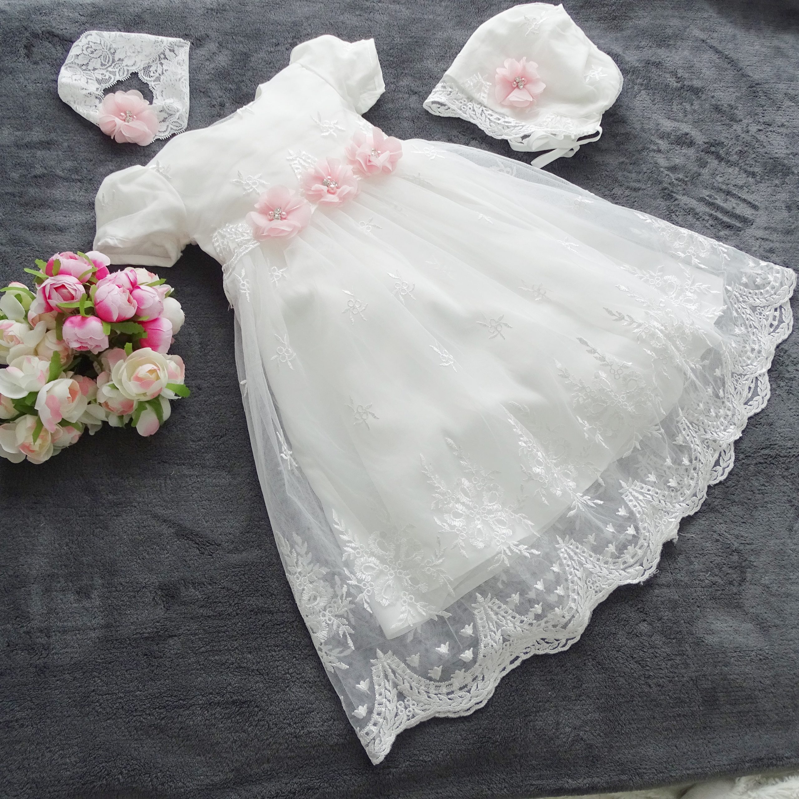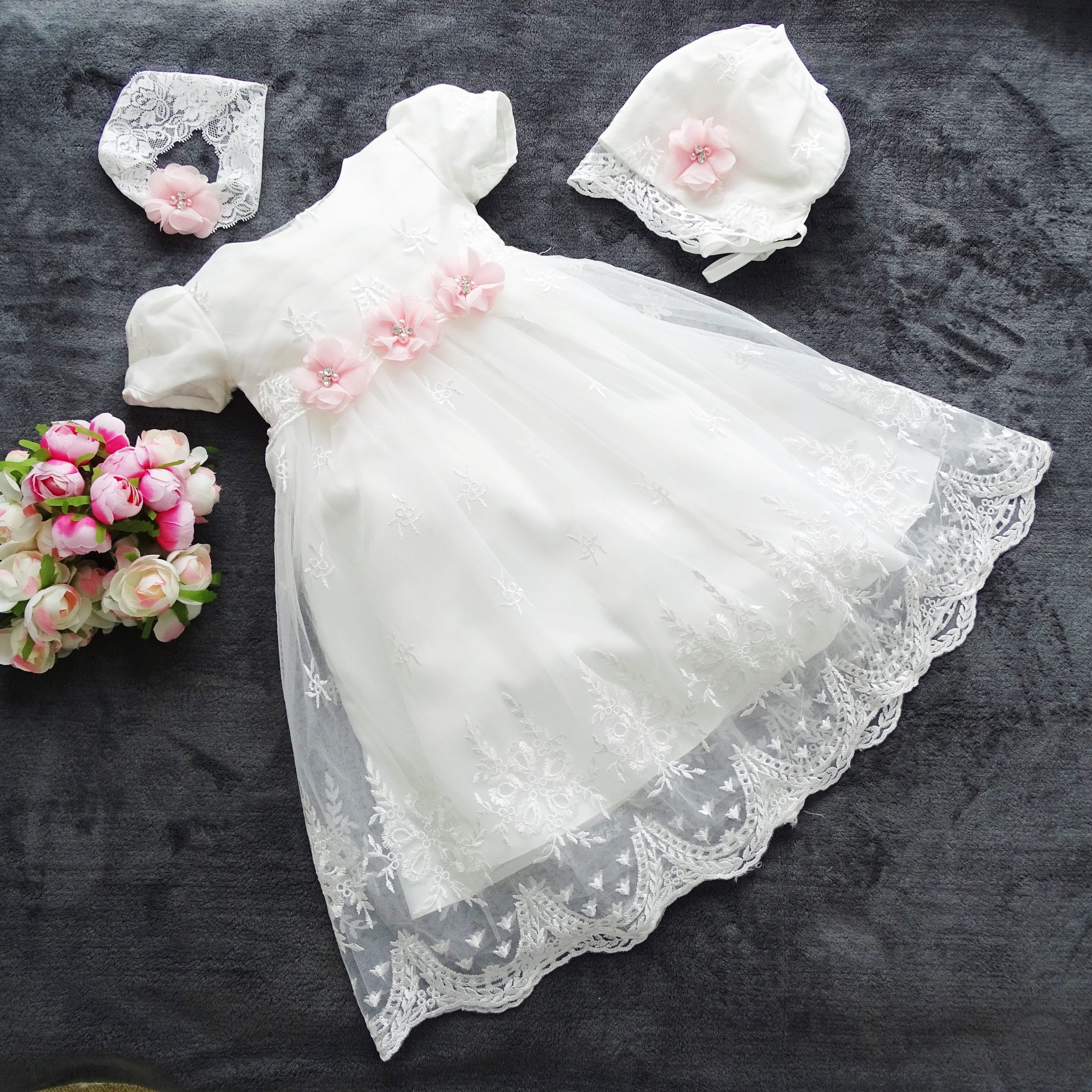 Taufkleid aus TBaumwollell und hochwertigen Spitze mit Unterrock aus Baumwolle in der Farbe Ecru. Hinten wird es mit Reíßverschluss geschlossen.
