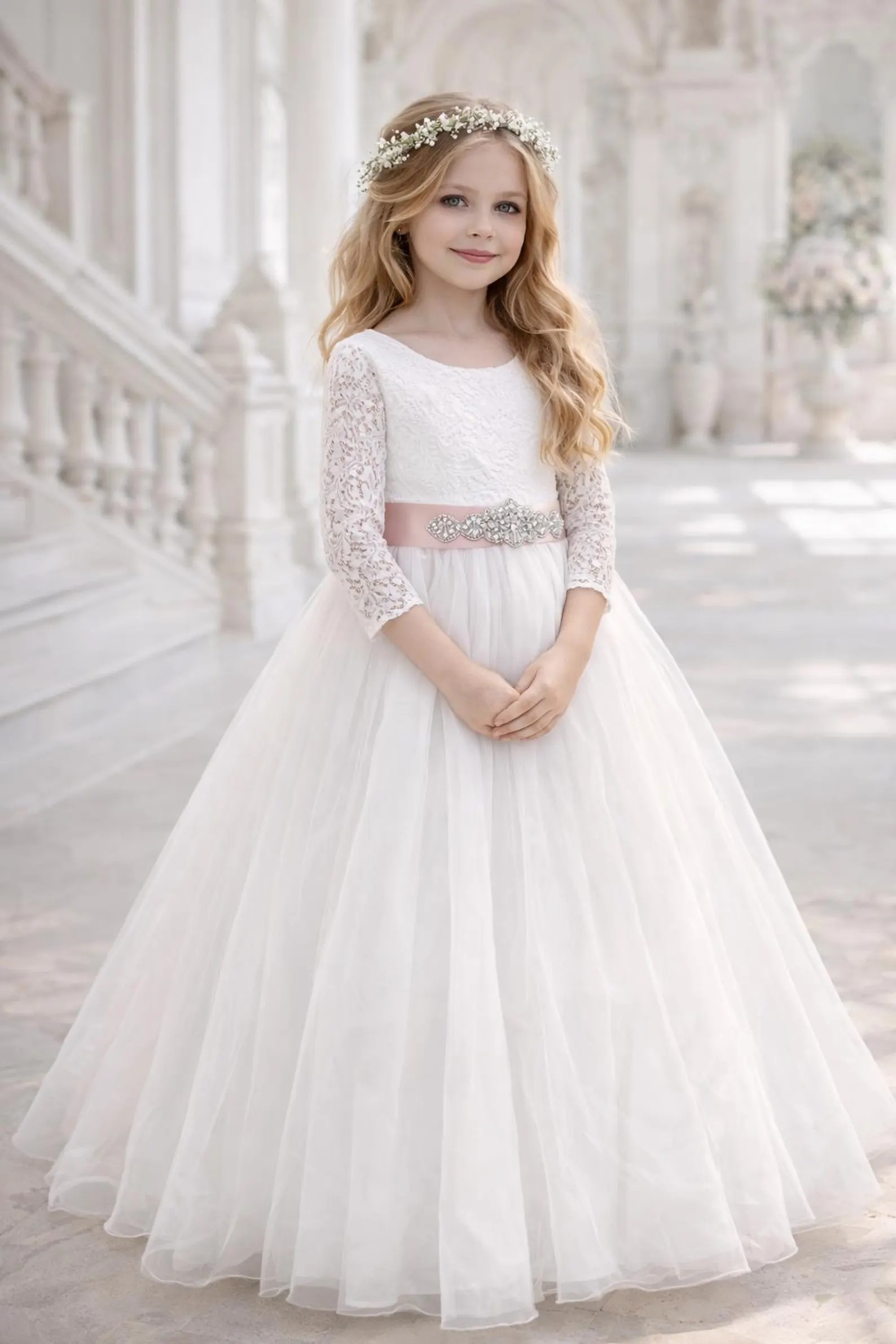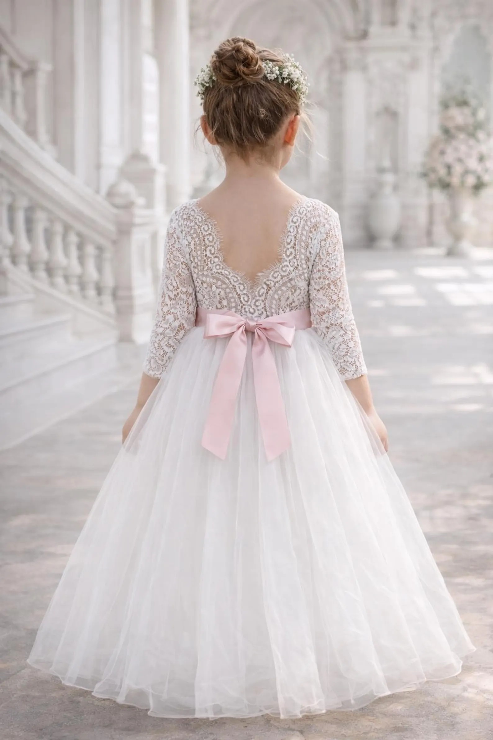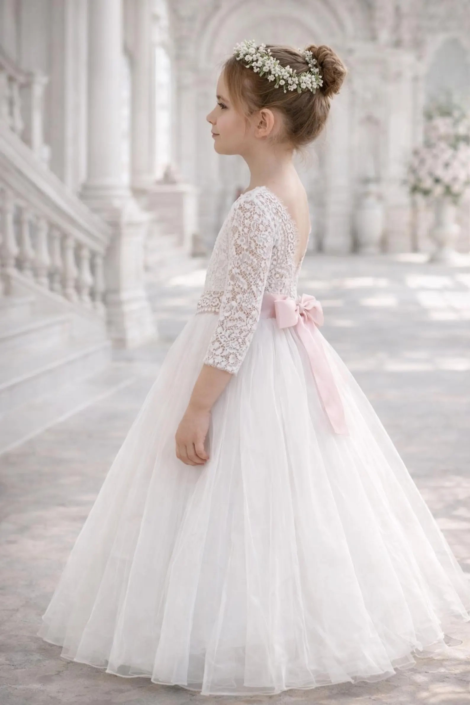 Dieses Kleid eignet sich perfekt für die Erstkommunion, als Blumenmädchenkleid bei Hochzeiten oder für festliche Familienfeiern.