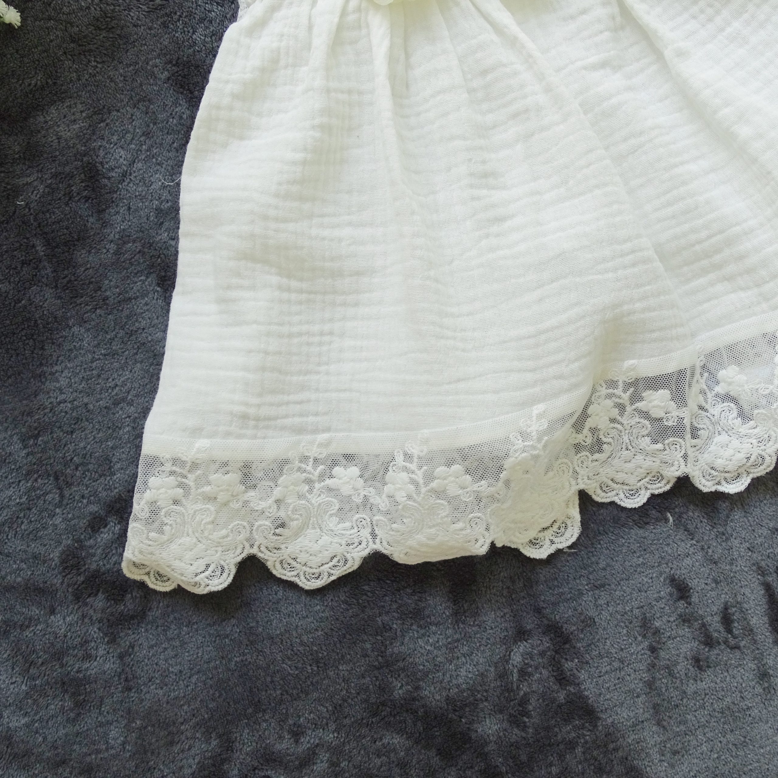 Taufkleid  100% Baumwolle   – Musselin mit Spitze. Hinten wird es mit Drucknöpfen geschlossen.