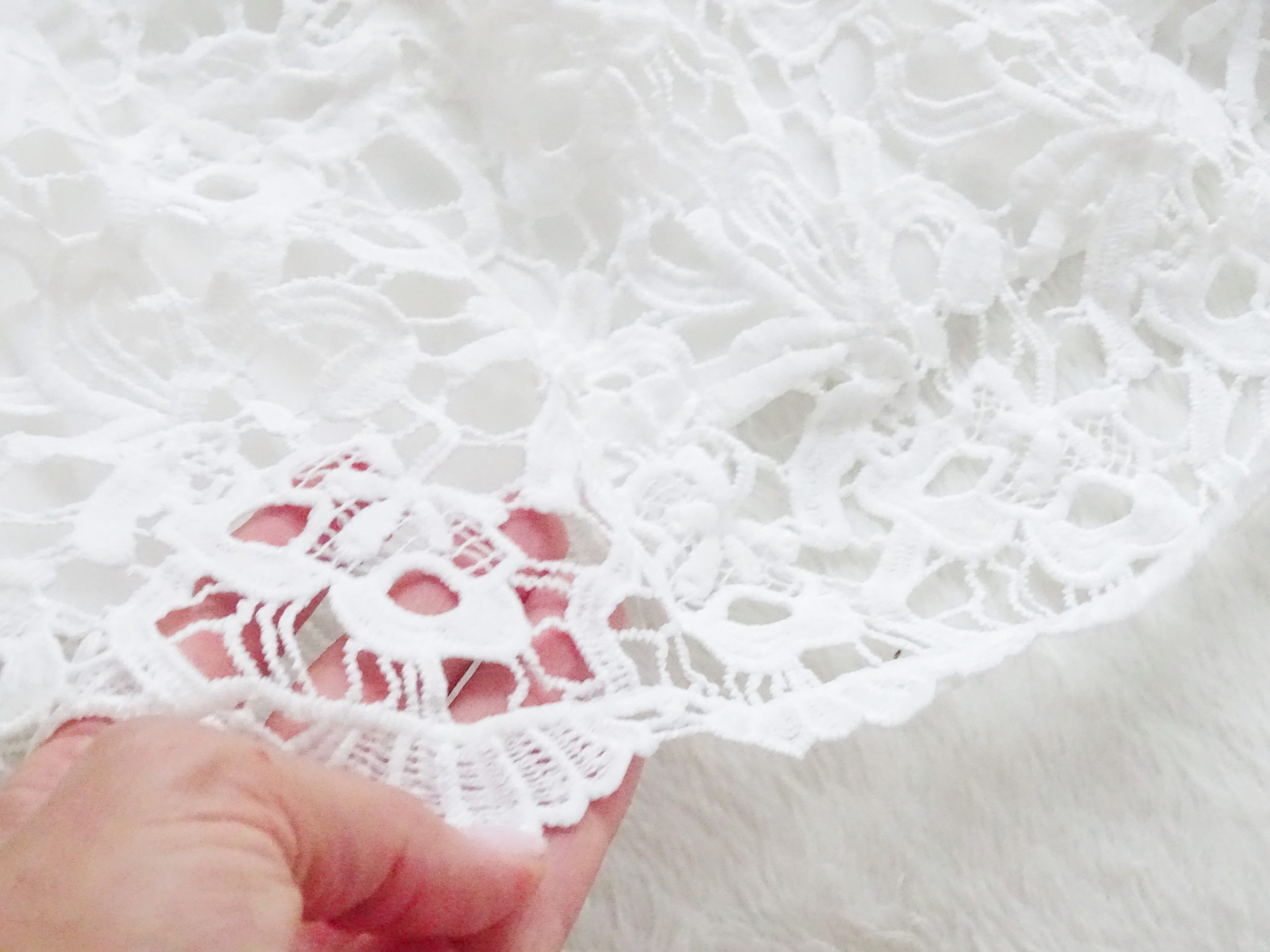 Das hochwertige Satin ist in der gleichen Farbe wie das Spitze und Tüll.