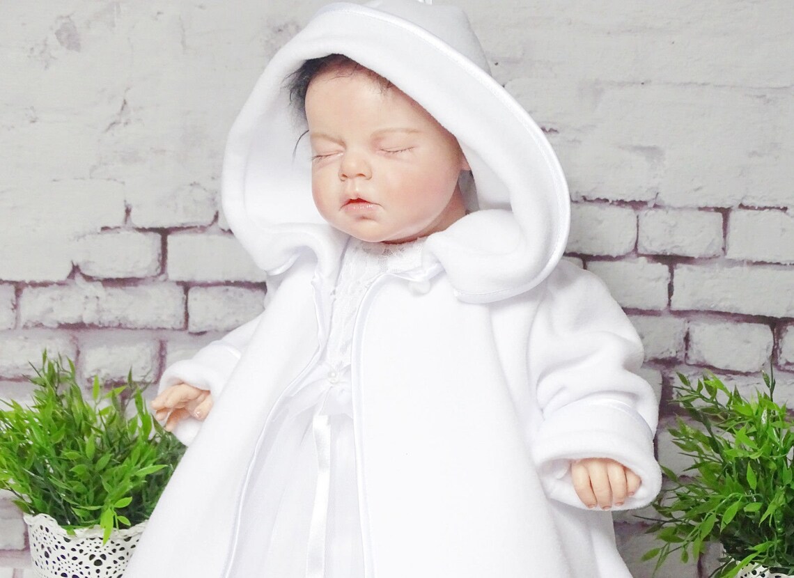 Der Taufmantel besteht aus hochwertigerm Fleece (Polyester).