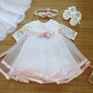 Dana Taufkleid, Festkleid + Stirnband + Schuhe + Bolero Set 4 Tlg. Farbe: ecru rosa