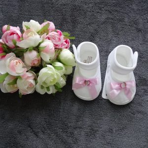 Babyschuhe, Taufschuhe Baby, Festliche Schuhe Baby Säugling Kleinkind, Krabbelschuhe, Lauflernschuhe, Stoffschuhe weiß, Taufkleidung -B102-