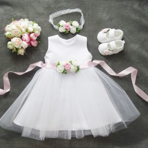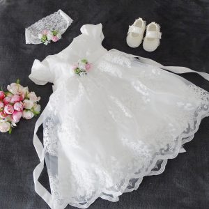 Clara+ 01 Taufkleid, Festkleid +Stirnband+Schuhe Farbe: weiß