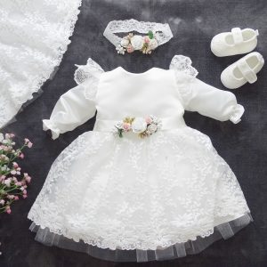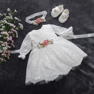 CHANTAL 02 – Taufkleid, Festkleid +Stirnband Farbe: ecru (Kopie)